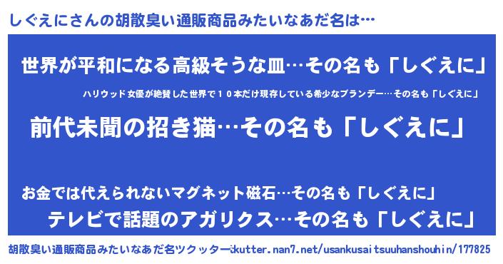 | 意味不明あだ名 | 『永久保存しぐえに』『自称しぐえに』 |