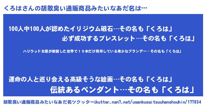 | 意味不明あだ名 | 『住所不定無職くろは(89歳)』 |