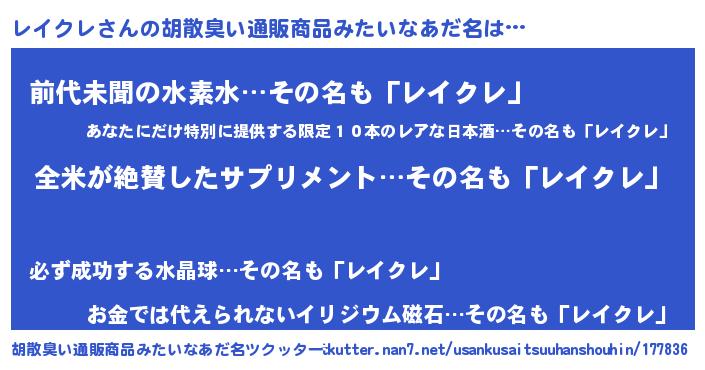| 意味不明あだ名 | 『とにかく怪しいレイクレ』 |