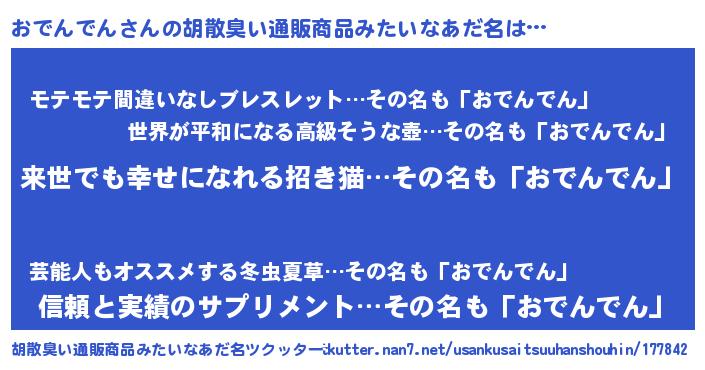 | 意味不明あだ名 | 『永久保存おでんでん』『自称おでんでん』 |