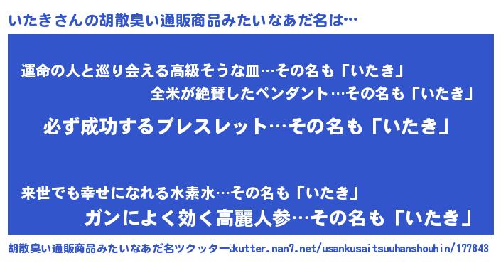 | 男性向けラノベタイトル風あだ名 | 『緋弾のイタキ』『魔法科高校のいたき』 |