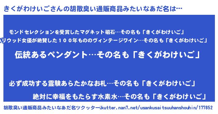 | 意味不明あだ名 | 『とにかく怪しいきくがわけいご』 |