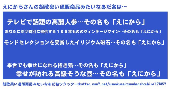 | 欧米人風あだ名 | 『えにから・ステッグマイヤー』 |