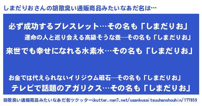 | ヘコむあだ名 | 『しまだりお(苦笑)』『しまにー』 |