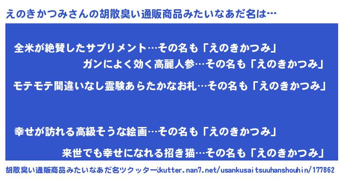 | 肩書あだ名 | 『えのきかつみ機長』『えのきかつみ大佐』 |