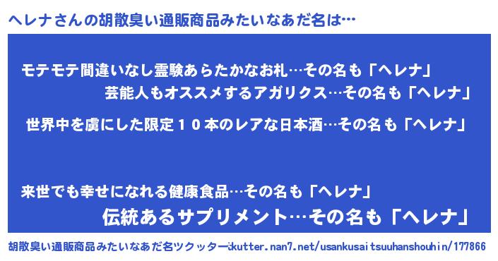 | ヒーロー風カッコイイあだ名 | 『仮面ヘレダー』『スーパーヘレナ』 |