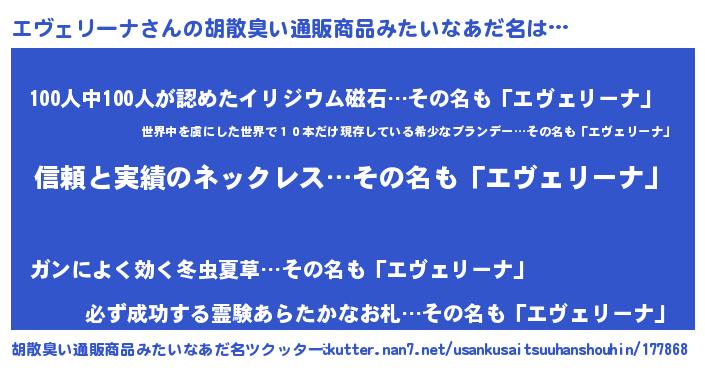 | ポケモン風あだ名 | 『エヴキング』『ヒエヴェリーナ』 |
