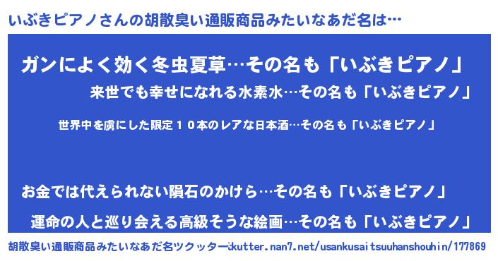 | 男性向けラノベタイトル風あだ名 | 『いぶきピアノに滅ぼされるだけの簡単なお仕事です』 |