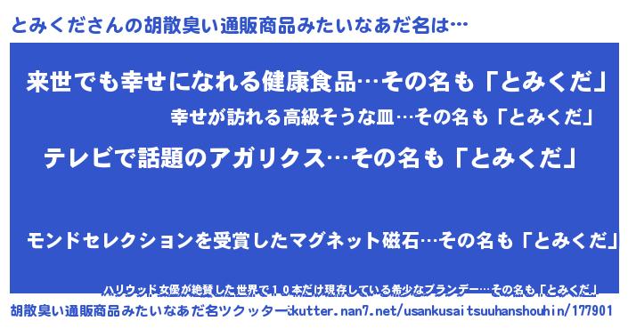 | 意味不明あだ名 | 『自称とみくだ』『永久保存とみくだ』 |
