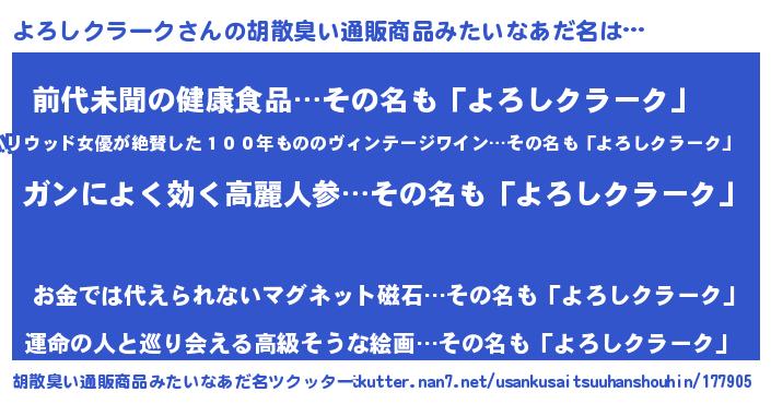 | ヘコむあだ名 | 『よろしクラーク(笑)』『酢こんぶ』 |