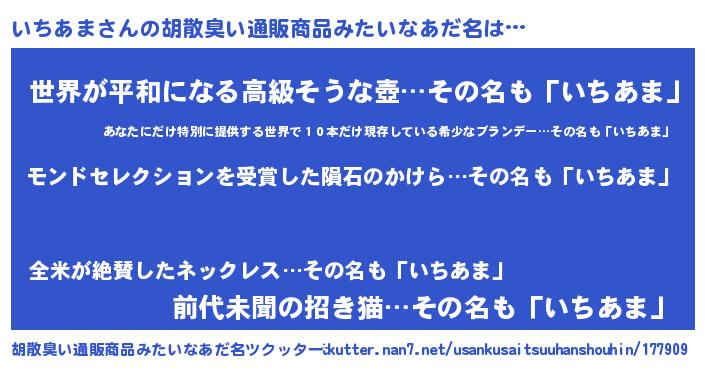 | ヒーロー風カッコイイあだ名 | 『天空の使者いちあま』『ネオイチアマ』 |