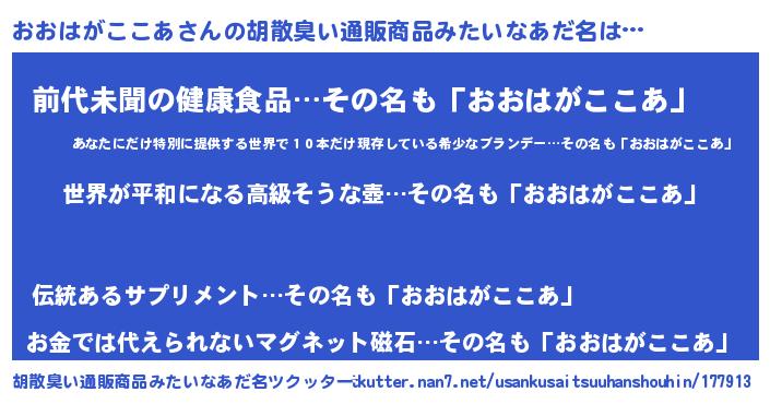 | 意味不明あだ名 | 『おおはがここあフォーエバー』 |