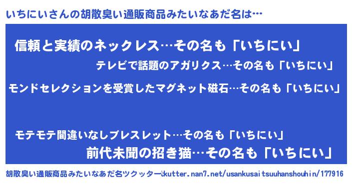 | 男性向けラノベタイトル風あだ名 | 『ノーゲーム・ノーイチニイ』 |