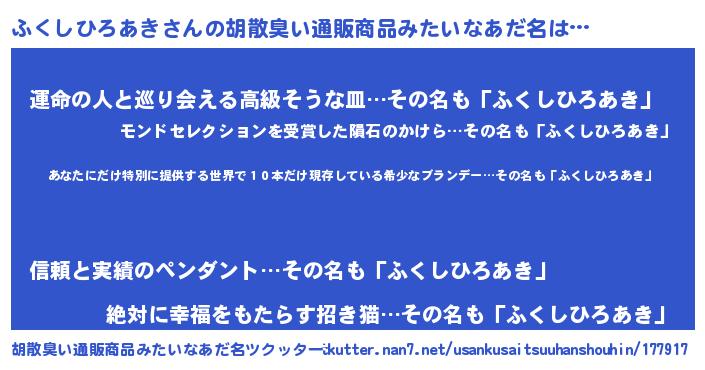 | 意味不明あだ名 | 『住所不定無職ふくしひろあき(71歳)』 |