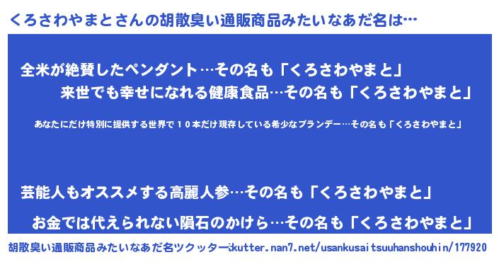 | 意味不明あだ名 | 『住所不定無職くろさわやまと(91歳)』 |
