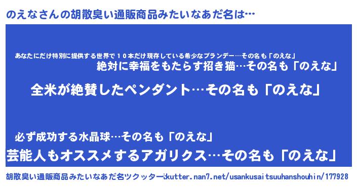 | 意味不明あだ名 | 『とにかく怪しいのえな』『自称のえな』 |