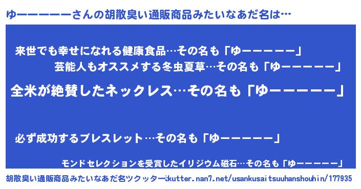 | 男性向けラノベタイトル風あだ名 | 『ゆーーーーーの嫁は女の子じゃないと思った?』 |