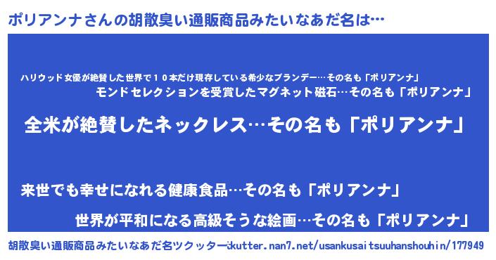 | 男性向けラノベタイトル風あだ名 | 『ポリアンナの嫁は女の子じゃないと思った?』 |