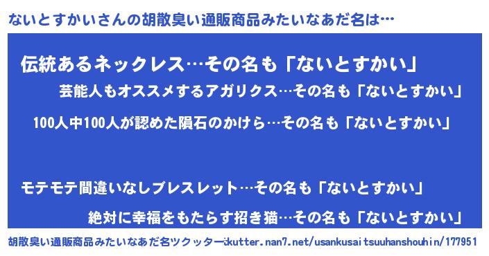 | ヘコむあだ名 | 『ないっちょ』『ないとすかい(笑)』 |