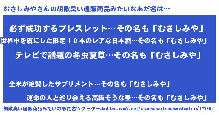 | 女子向けラノベタイトル風あだ名 | 『むさしみやアンティーク』 |