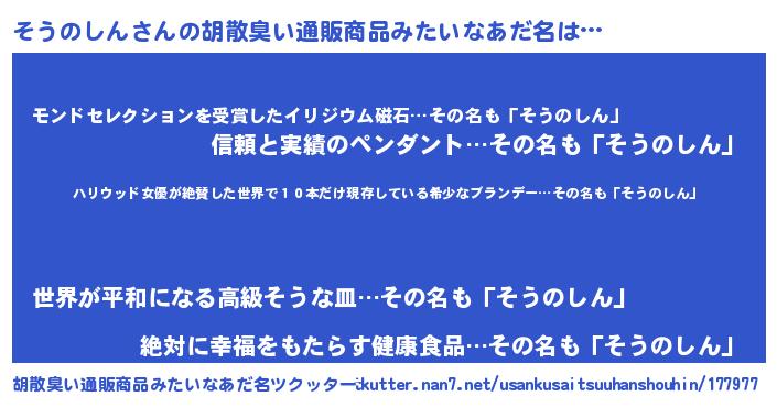 | ヘコむあだ名 | 『そうのしん(遠い目)』『そう太郎』 |