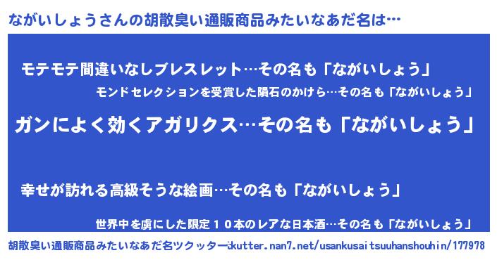 | 意味不明あだ名 | 『自称ながいしょう』 |