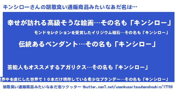 | 意味不明あだ名 | 『とにかく怪しいキンシロー』 |
