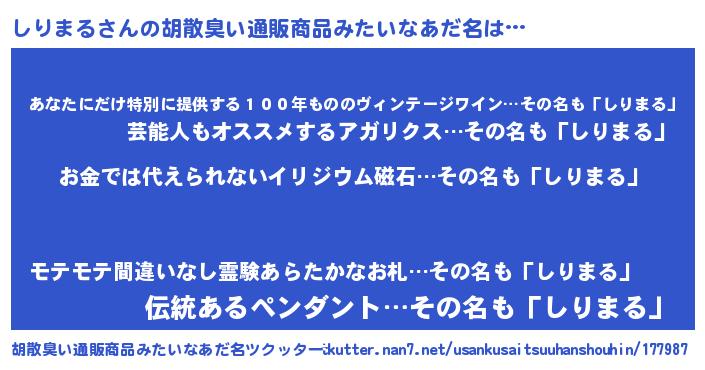 | 欧米人風あだ名 | 『アンジェラ・しりまる』 |