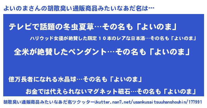 | 意味不明あだ名 | 『ニラ科よいのま属』『自称よいのま』 |