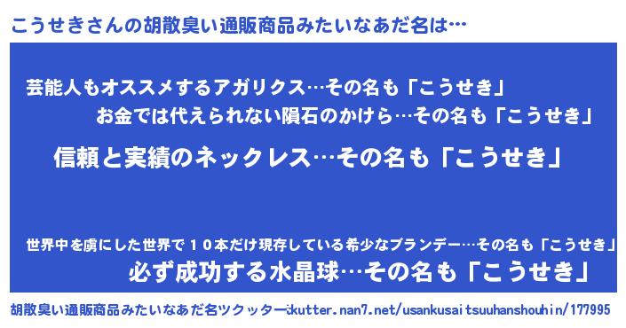 | ヒーロー風カッコイイあだ名 | 『暗黒騎士コウ』『究極戦士コウセキ』 |