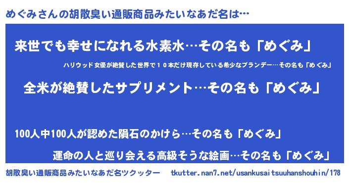 | 恥ずかしいあだ名 | 『メグリンリン』『めぐちん』 |