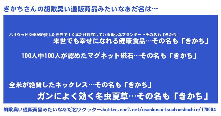 | ヘコむあだ名 | 『きかち(小並感)』『きかぷりん』 |