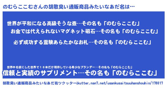| 女子向けラノベタイトル風あだ名 | 『(仮)のむらここむのやんごとなき事情』 |