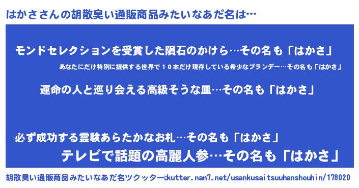 | 意味不明あだ名 | 『はかさフォーエバー』『自称はかさ』 |