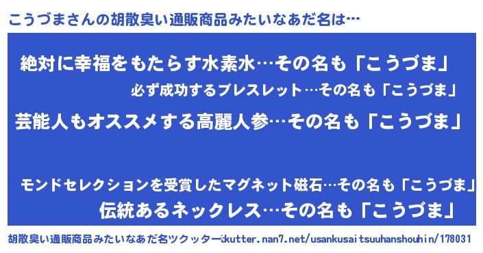 | ヒーロー風カッコイイあだ名 | 『最強戦士コウヅマ』『ネオコウヅマ』 |