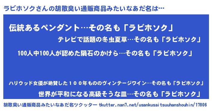 | ヘコむあだ名 | 『ラビっぺ』『なまこ酢』 |