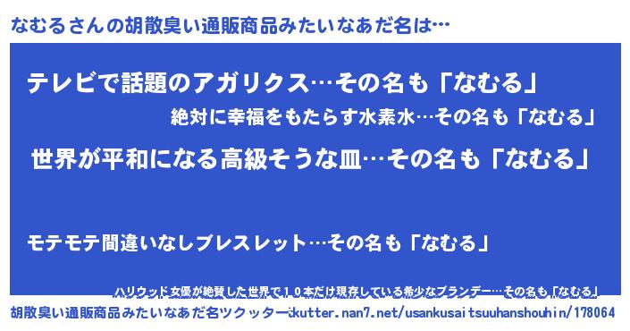 | 意味不明あだ名 | 『なむるフォーエバー』『自称なむる』 |