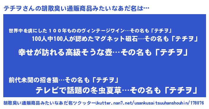 | ヘコむあだ名 | 『牛乳』『テチヲ(笑)』『テチもー』 |