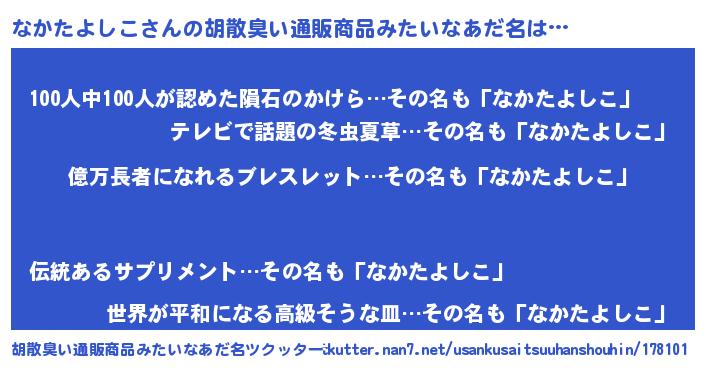 | ツイッター | なかたよしこさんのツイッターID『namakemono_man』 |