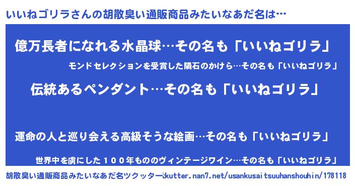 | 男性向けラノベタイトル風あだ名 | 『はたらくいいねゴリラさま!』 |