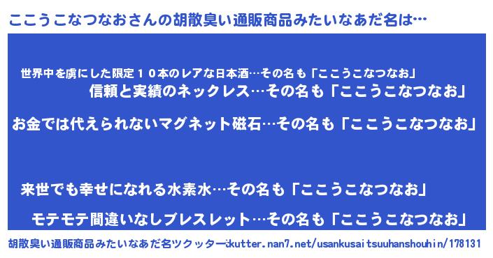 | ヒーロー風カッコイイあだ名 | 『愛の使者ここうこなつなお』 |