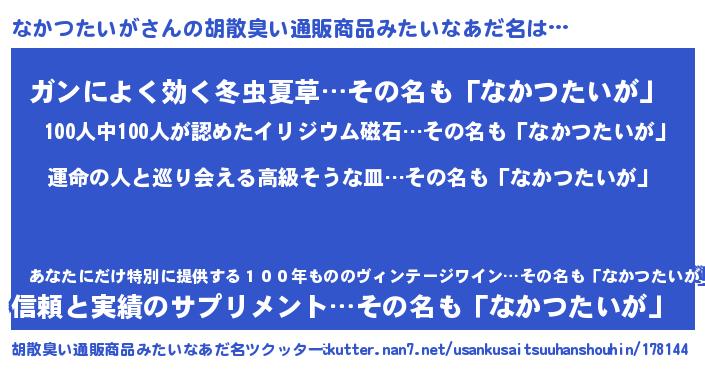 | ヘコむあだ名 | 『酢こんぶ』『なかっぺ』『なかもー』 |