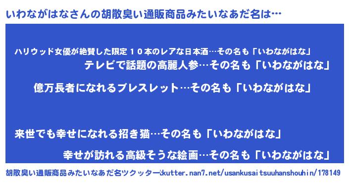| ヒーロー風カッコイイあだ名 | 『スーパーイワナガハナ』『仮面イワダー』 |