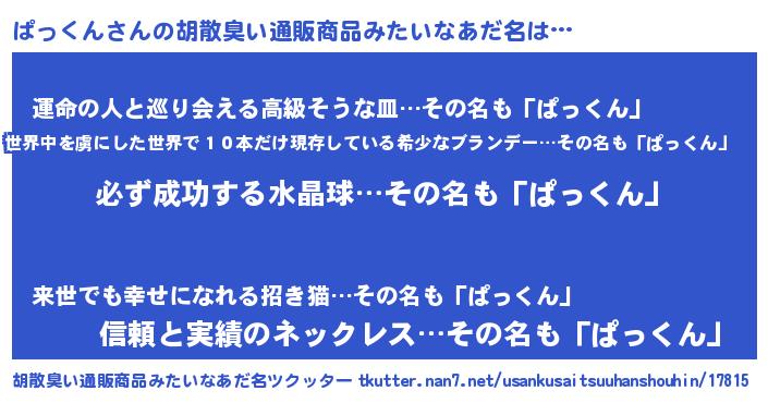 ぱっくんさんの胡散臭い通販商品みたいなあだ名をツクッター!