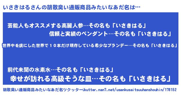 | 意味不明あだ名 | 『住所不定無職いさきはる(79歳)』 |