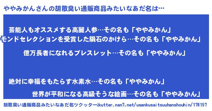 | 意味不明あだ名 | 『ペロリンややみかん』『自称ややみかん』 |