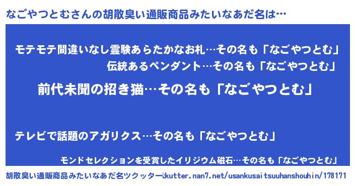ヘコむあだ名 | 『なごやつとむ(小並感)』『なごふぇ~』 |