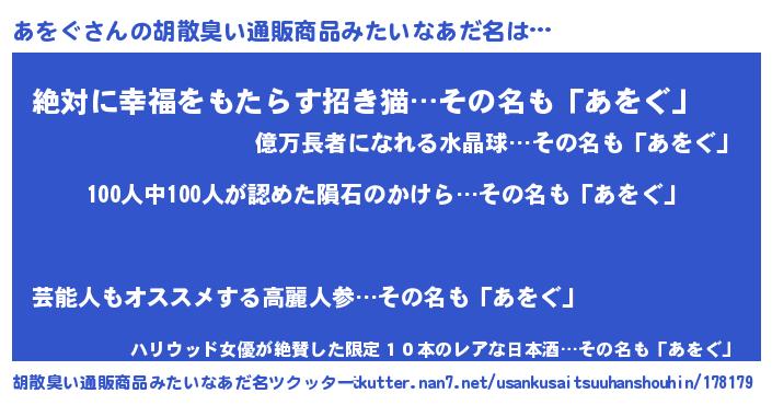 あをぐさんの胡散臭い通販商品みたいなあだ名をツクッター!