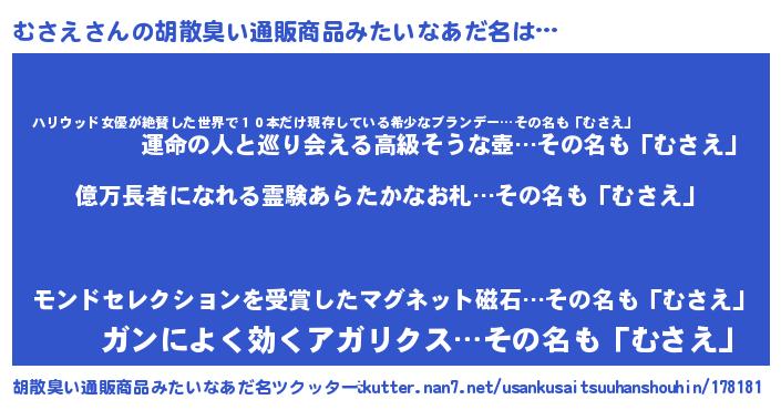 | ヘコむあだ名 | 『むさもー』『なまこ酢』『むさお』 |