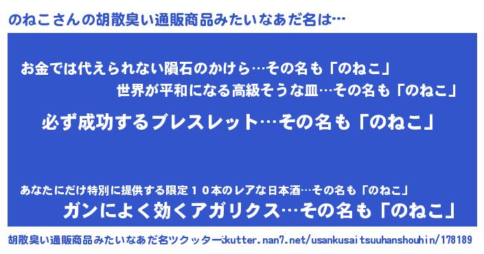 | 意味不明あだ名 | 『ペロリンのねこ』『自称のねこ』 |